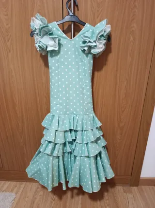 Traje de flamenca talla XXS/XS color verde. Tiene una puesta.