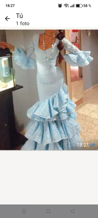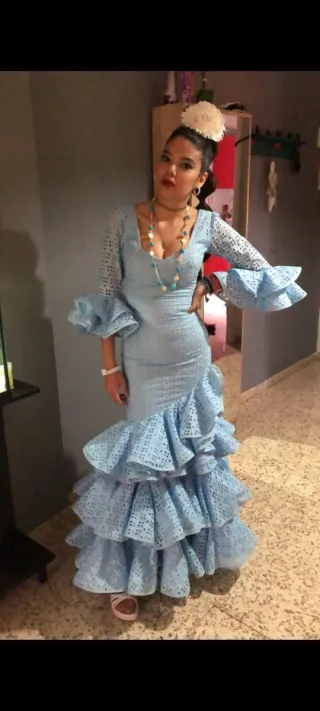 Traje de flamenca celeste