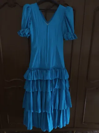 Traje de flamenca azul con volantes