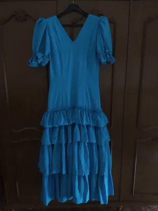 Traje de flamenca azul y amarillo