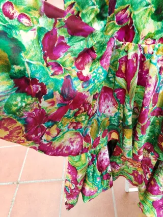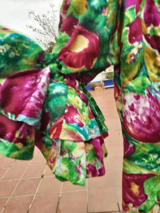 Traje de flamenca con un bonito estampado floral. - Diseño sin mangas. - Volantes en la falda. - Escote en pico. -No negociable -Hago envíos