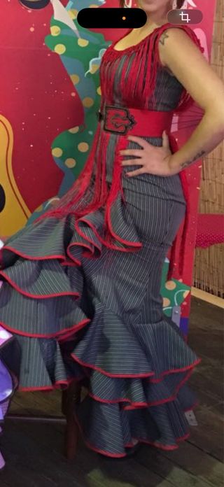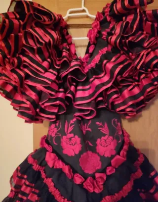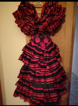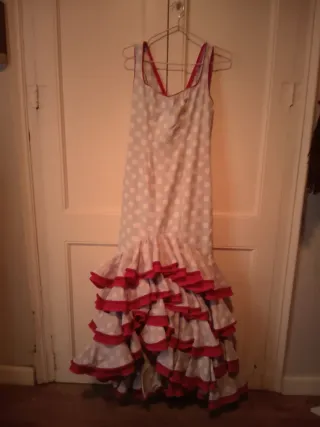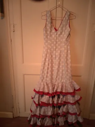 Vestido flamenca ajustable en espalda comprado en Sevilla y valorado en 180 euros Solo usado una vez Medidas aproximadas vestido: 147 cm alto 40cm hombro 85cm pecho 75cm cintura Medidas modelo: 1,70cm alto 85cm pecho 80cm cintura 100cm cadera.