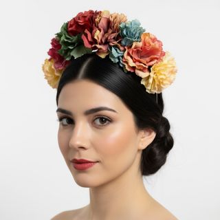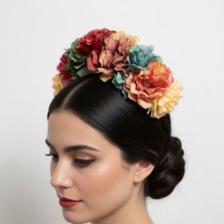 Preciosa diadema de claveles, ideal para complementar tu traje de flamenca. - Flores de tela con acabado artesanal. - Diseño vibrante y colorido. - Montada sobre una base discreta. - Medida: 22cm