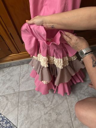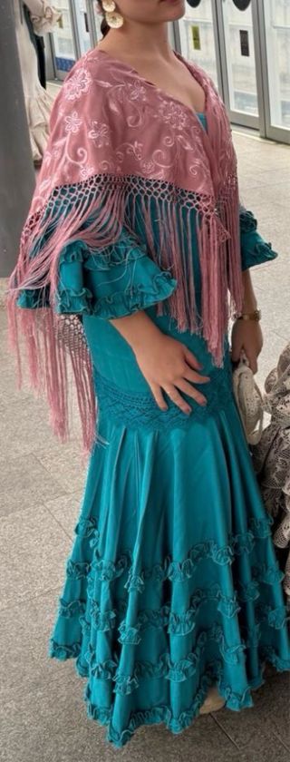 Traje de flamenca talla XS (34 aprox). Tiene algunos desgastes por el uso del mantoncillo.