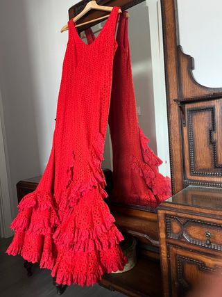 Traje de flamenca con volantes. - Traje rojo perforado. Hace la silueta muy bonita. De muy buena calidad con bolsillo interior.