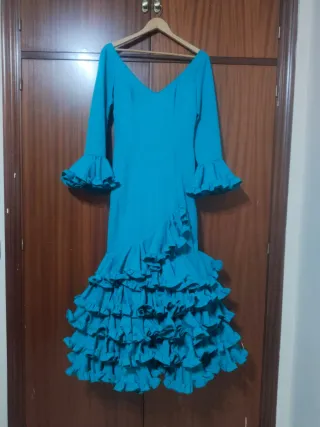 Traje Flamenca Azul - Talla 40, como nuevo .