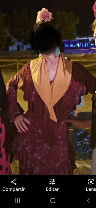 vestido de flamenca de El Ajolí. tiene volante en escote para poderlo poner también sin mantoncillo. está nuevo. puesto dos veces solo un rato.