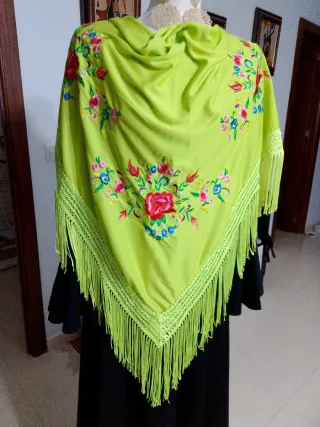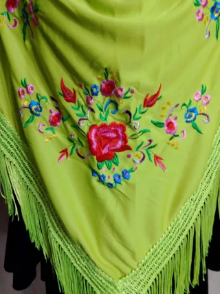 Elegante mantoncillo verde lima, perfecto para trajes de flamenca. Su diseño bordado añade un toque especial. - Bordado detallado. - Diseño llamativo.