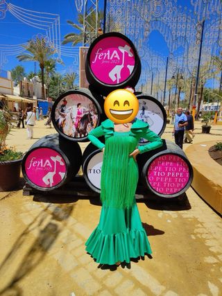Traje de flamenca verde con lunares blancos