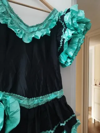 Traje de flamenca negro y turquesa