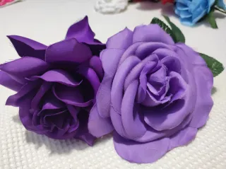 Precioso conjunto de flores estilo flamenca en tonos morados. Ideales para complementar tu traje. - Flores de tela. - Diseño llamativo.