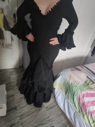 Traje de flamenca de tela bioelástica, es super cómodo. En ropa tengo una talla 48, en flamenca una talla 52, porque siempre talla mas chico, para que os hagáis una idea. Preguntar cualquier cosa sin compromiso.