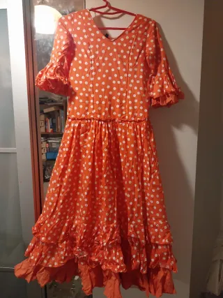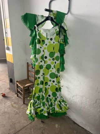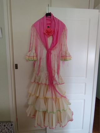 Traje de flamenca semi nuevo (puesto en dos ocasiones). Está en perfecto estado. Tiene para sacarle