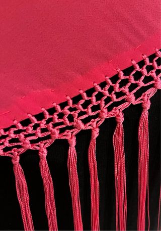 Precioso mantoncillo para flamenca de niña, con un diseño elegante y detalles Realizado a mano en crespon y enflecado a mano . Medidas Largo parte sin flecos :79cm Largo espalda sin contar los flecos :28cm Largo enrejado y flecos:21cm