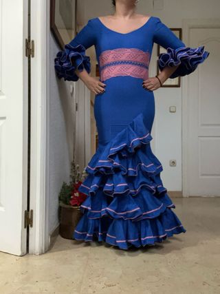No admito devolución, escucho oferta envío rapido por inpost, entrega en mano también pero solo en Mairena del Aljarafe Equivalente a talla 36 aprox ( solo ampliable de cadera y también se puede encoger de talla ) Medidas y estado en fotos ( una pequeña puntada pero es una parte que no se ve ) Sevilla encajes azul eléctrico rosa chicle traje flamenca gitana volantes baile flamenco regional vintage azafata rosa bebé feria romerías