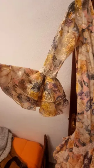 Precio negociable Talla 36 Tiene doble volante con tira bordada en mangas y volantes. Es camel con detalles celestes Precio original en tienda 320€