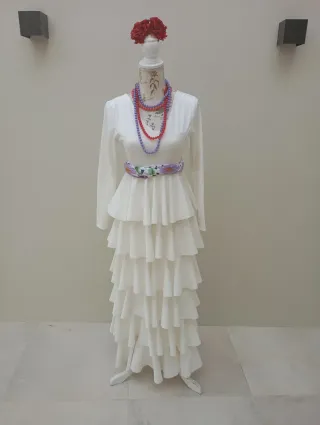 Traje Gitana Flamenca Talla S, color blanco roto.