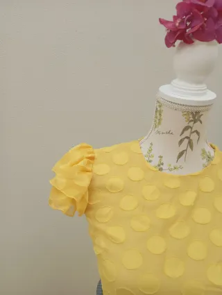 Traje de flamenca de color amarillo, talla XS y S. Corte en la cintura, forro beige.