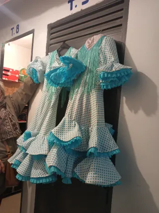 Conjunto de trajes de flamenca o gitana madre y hija. Hecho a mano por modista. Se vende porque ya no le está bueno a mi hija El adulto talla 40, el de niña talla de 8 o 9 a 10 u 11 Precio del adulto 80€, el de niña 60€