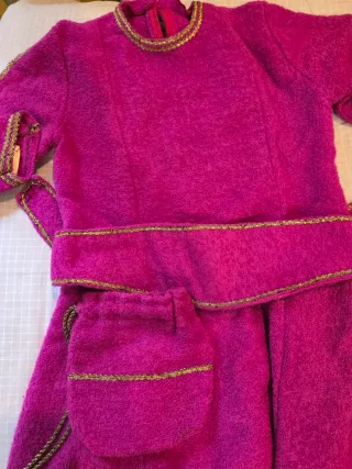traje medieval muy abrigo de forro polar pasamanería dorada diadema y bolso