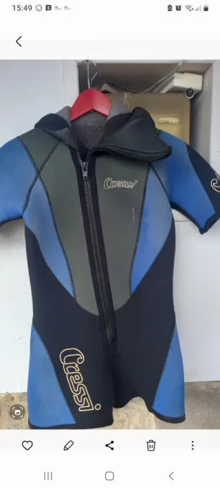 Traje de neopreno de la marca Cressi, con un grosor de 7mm. TALLA S PARA 38,30,42,44. - Diseño en color azul, verde y negro. - Cremallera frontal y capucha - Mangas y perneras cortas.