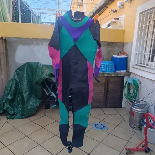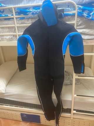 Traje de buceo de neopreno en excelente estado, usado solo dos veces. - Color negro y azul. - Diseño con capucha integrada. - Refuerzos en rodillas y espinillas.