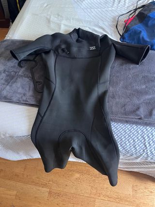 Traje de neopreno corto de la marca Billabong. - Color negro. - Logo de Billabong en la espalda. - Mangas cortas.