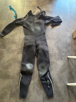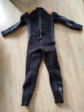 Traje de neopreno completo de la reconocida marca italiana Cressi, ideal para buceo recreativo, apnea o pesca submarina en aguas templadas. • Grosor: 5 mm, ofreciendo un buen equilibrio entre calidez y flexibilidad. • Talla: M/3 (Corresponde a una talla M de hombre o unisex. • Color: Negro con inserciones en amarillo neón para mayor visibilidad en el agua. • Diseño: Traje húmedo completo, con capucha incluida/separada (se adjunta con las fotos). Cremallera dorsal (espalda) de alta resistencia con cinta de arrastre marcada Cressi. Estado: Usado, pero muy bien conservado. Costuras y cremallera perfectas. ¡Traje fiable y de marca!