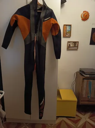 Traje de neopreno tribord con detalles en naranja. Usado una vez - Diseño de manga larga. - Paneles frontales texturizados.