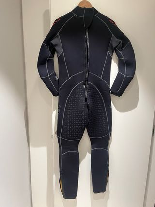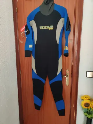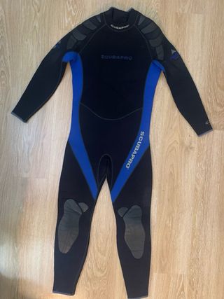 Traje de buceo Scubapro de 7 mm de grosor, Talla L. - Color negro y azul. - Paneles de protección en rodillas y hombros. - Cremallera en la espalda para facilitar la entrada y salida. - Le añadí una pequeña tira de neopreno en el cuello para evitar la rozadura del hilo de la costura