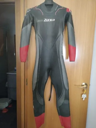 Traje de neopreno Zone3 modelo Aspire en color negro y rojo. - Diseño de manga larga. - Detalles en color rojo en puños y tobillos. - Cremallera en la espalda. -Bolsa de transporte rejilla incluida