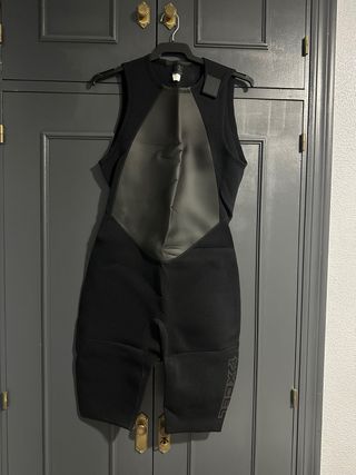 Traje de neopreno corto de la marca XCEL, sin estrenar 2/3. - Talla L - Color negro. - Diseño sin mangas. - Piernas cortas. - Logo de XCEL visible en la pierna