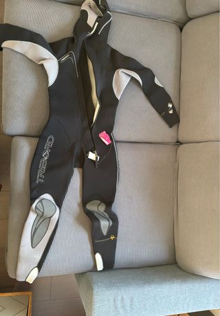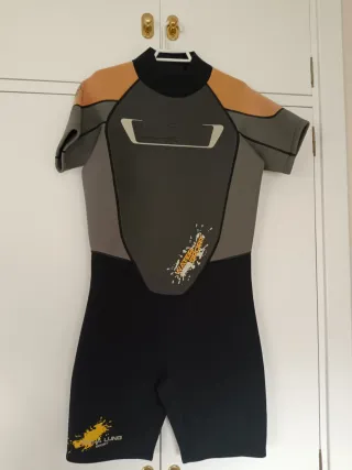 Traje de neopreno 3/2 sellado ideal para deportes acuáticos media temporada verano con agua fría. - Cremallera para facilitar su uso. - Refuerzos en las rodillas. Necesita repaso limpieza exterior