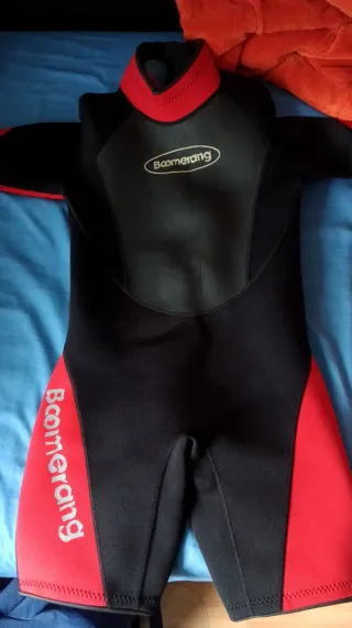 Traje de neopreno de manga y pierna larga para niños. Usado 1 vez - Color rojo y gris. - Talla 8 (altura 122-133 cm). - Rodilleras reforzadas.