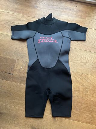 Traje de neopreno corto de la marca No Fear, ideal para actividades acuáticas. - Manga corta. - Piernas cortas. - Talla 11-12 años.