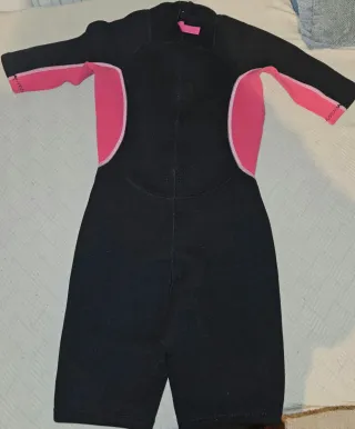 Traje de neopreno para niñ@s, ideal para actividades acuáticas. - Color morado con detalles en rosa. - Manga corta. - Cremallera frontal para facilitar su uso. Creo que serviria para 5 o 7 años