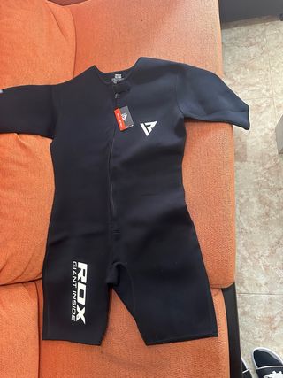 Traje de neopreno RDX giant inside corto para hombre. - Color negro. - Talla 3XL. - Cierre de cremallera frontal. - Logo RDX en la pierna.