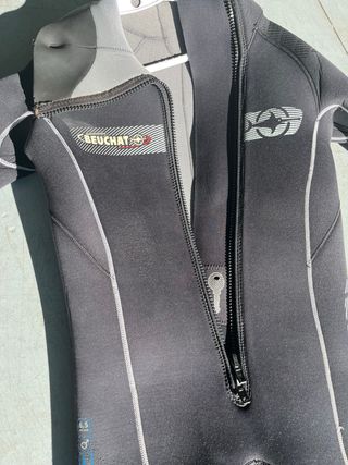 Traje de neopreno completo para buceo. Diseñado para ofrecer comodidad y protección. - Material de neopreno. - Diseño de manga larga y pierna larga. - Paneles acolchados en rodillas y espinillas. - Cremallera frontal para facilitar su uso.