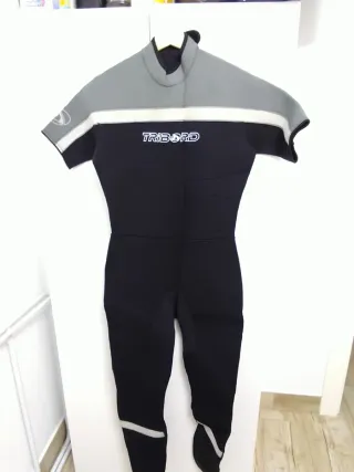 Traje de neopreno completo de la marca Tribord, ideal para buceo y deportes de agua. Talla M temperaturas -14 a 24 grados Lo vendo por falta de uso. está como nuevo, usado 1 día literalmente. - Cremallera frontal. - Refuerzos en rodillas
