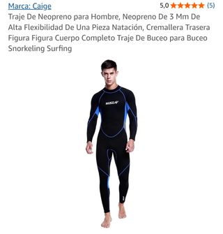 Traje de neopreno Caigé para hombre, talla L. Ideal para natación, buceo y snorkel. SOLO 2 USOS. - Neopreno de 3mm de grosor. - Cremallera trasera. - Alta flexibilidad. - Diseño de una pieza. - Color azul y negro. Está en muy buen estado.