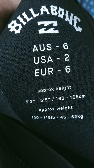 Traje de neopreno nuevo (usado solo un día) Billabong Foil Talla 6 para mujer Grosor 4/3 Para personas de 1,50 a 1,65 m de altura Peso entre 50 y 65 kg - Talla: AUS 6, USA 2, EUR 6 - Altura aprox.: 160-165cm - Peso aprox.: 45-52kg