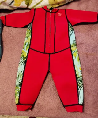 Traje Neopreno Bebé Rojo Estampado Tropical