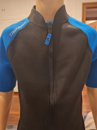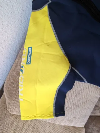 Traje de neopreno niño Olaian 1,5 mm – Talla 5/6 años (122–133 cm) Vendo traje corto de neopreno infantil Olaian (Decathlon), ideal para niños/as • Altura orientativa: 122–133 cm • Grosor: 1,5 mm • Uso ideal: playa, surf, bodyboard, paddle surf o piscina en verano • Cierre trasero con cremallera y cordón largo para facilitar poner y quitar • Estado: muy bueno, sin roturas ni desgastes, costuras perfectas Traje ligero, cómodo y flexible, perfecto para proteger del frío, del sol y del viento en el agua. Color azul marino con detalles verde flúor