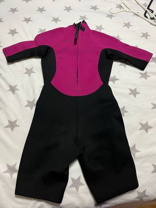 Trajes de neopreno corto para niño de la marca Tribord, ideal para actividades acuáticas. tengo 2,uno para talla 2 años y otro para 3-4 años - Color fucsia y negro. - Manga corta. - Cierre de cuello.