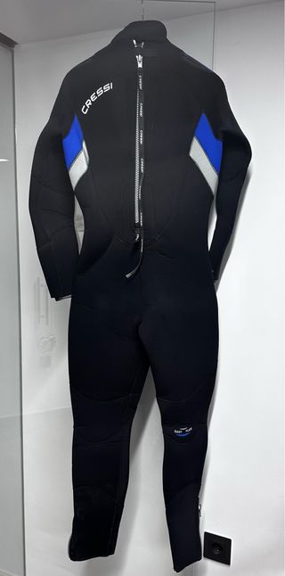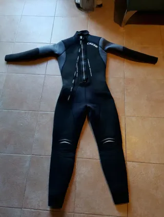 Traje neopreno cressi confort 5mm, tiene algunos signos de uso pero no son un problema para utilizarlo, la cremallera sube y baja sin problema Es muy elástico y super cómodo ( Me está pequeño 😔) Precio negociable