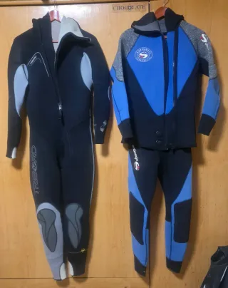 Molestate en leer el anuncio si te quedan dudas , te las aclaro Se venden dos trajes de buceo.( neopreno ) En excelentes condiciones - Traje negro con detalles grises y capucha, Cierre delantero cremallera, marca tribooard, tejido micropororoso, 5 mm grosor talla m. - Traje azul y negro con capucha,Dos piezas, marca ,subacua modelo titaniumalpha ,tejido interior semimeco. 5 mm grosor que seguramente sea alguno mas por el tejido semiseco interior Talla l (el precio que hay puesto es por que hay que poner un precio) pero no es el real ,,, ideaales a actividades acuaticas , escucho ofertas serias.