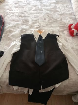 Traje de una boda, perfecto estado. Talla S. La etiqueta que lleva no es la talla, lo cosió la modista para arreglarlo a la medida del novio. Mirar más abajo medidas Chaqueta , pantalones, chaleco y corbata.Entrego en Barcelona. Escucho ofertas, gracias Medidas Largo pantalón 96 cm aprox Ancho pantalón por delante con botón cerrado 36 cm Ancho chaleco cerrado por delante 40 cm Largo manga 56 cm Ancho hombros por detrás 42 cm Medidas aproximadas. Recomiendo medir antes de comprar o en persona