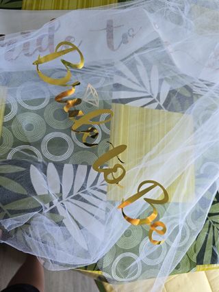Velo Y banda para despedida de soltera. Ideal para una celebración inolvidable. - Velo de tul blanco con inscripción dorada 'Bride to Be'. - Banda para la novia