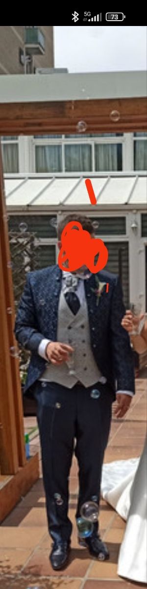 Elegante traje de novio con un acabado brillante.Precio negociable - Diseño llamativo y sofisticado.