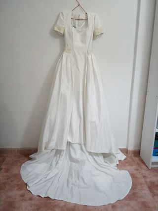 Traje de novia con can can y cola de seda. Confeccionado por una modista. Talla 38/40 .